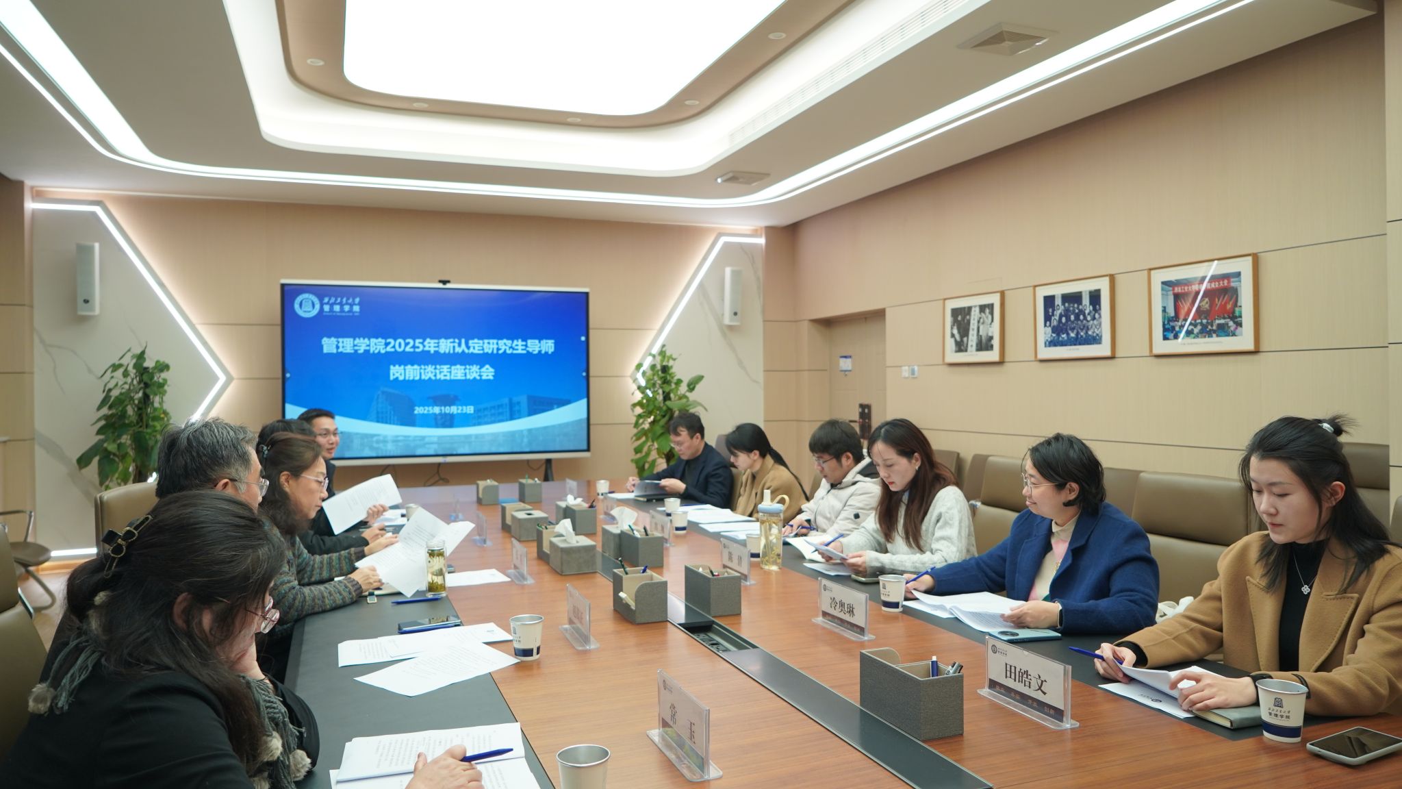 于10月23日下午召开了2025年新认定研究生导师岗前谈话座谈会。成人影院党委书记张爽、党委副书记王海啸、院长助理洪兆富、资深导师代表赵嵩正教授、常玉教授及本年度新认定的研究生导师参加了本次座谈会。会议由院长助理洪兆富主持。
