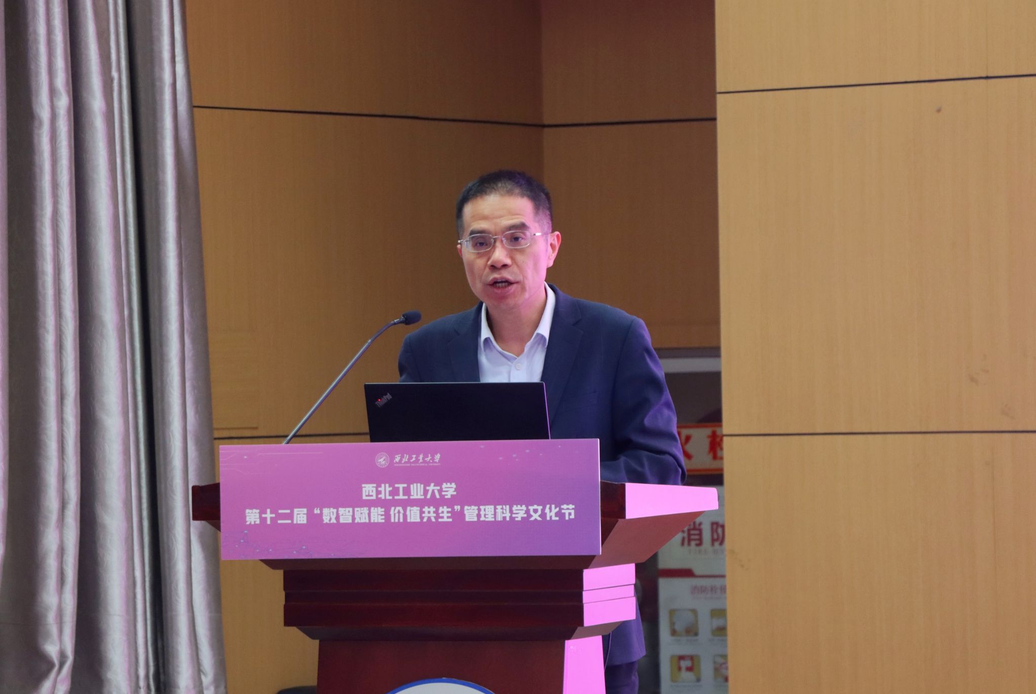 车阿大在致辞中回顾了近年来成人影院在学科建设、科学研究、人才培养方面取得的成绩,介绍了成人影院举办管理科学文化节总体考虑。他表示,当前人工智能、物联网、区块链等技术的快速发展深刻重塑管理生态与发展格局,希望通过举办管理科学文化节,搭建一个开放、互动、前沿的“第二课堂”交流空间,让同学们理解数据如何重塑管理逻辑、如何驱动组织变革、如何实现价值共创,在思维碰撞中激发创新灵感,在实践探索中提升专业素养,深化“第一课堂”与“第二课堂”的协同互补。