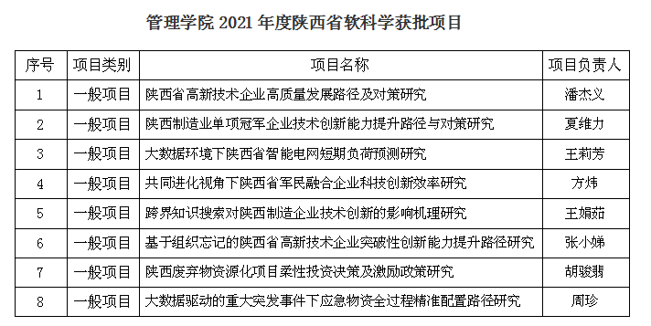 近日,陕西省科技厅公布了2021年度陕西省软科学项目评审结果公布,成人影院 共申报11项,获得立项8项,立项率达73%,项目直接经费达20余万元。