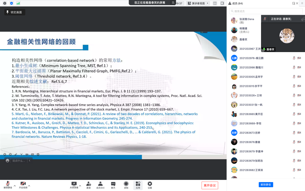 2021年11月19日下午14:00,浙江工商大学统计与数学成人影院经济统计系聂春笑老师通过线上形式做了题为“金融相关性网络的结构与演化特征”的讲座。本次讲座由赵龙峰副教授主持,成人影院